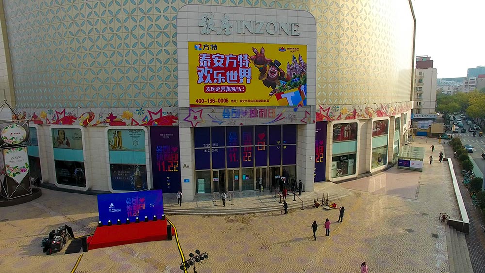 (華強方特投放“旗艦商屏”山東銀座商城旗艦店戶外LED屏廣告)
