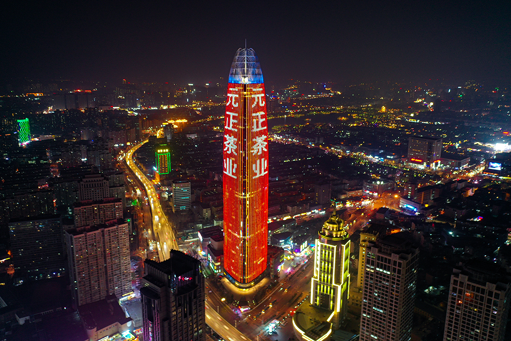 (元正紅茶投放濟南地標媒體--濟南綠地中心廣告)