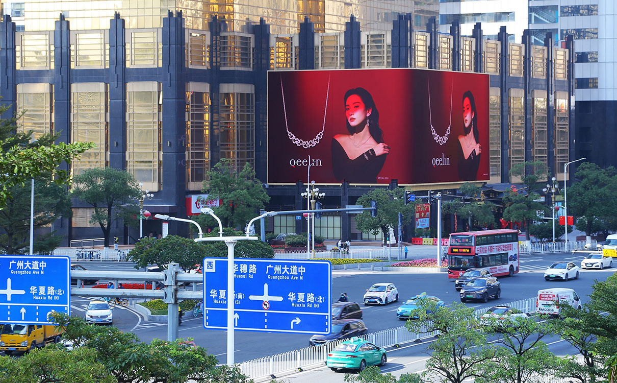”媒體位于南岳大廈外立面,正對珠江新城主干道“