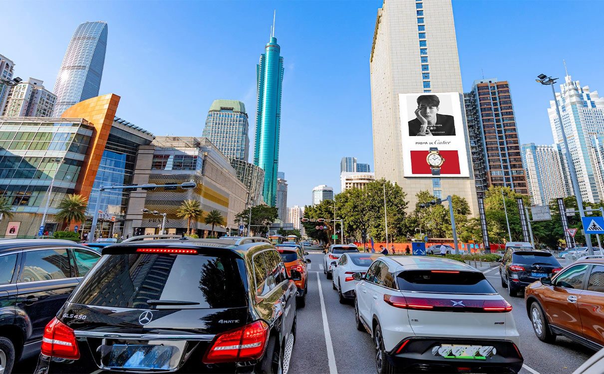 【商圈覆蓋優勢】位于深圳最高端的商業圈——萬象城商圈,在萬象城的LV、GUCCI、PRADA等奢侈品直營店里可以看到該廣告位全景;周邊高端購物中心、寫字樓、社區聚集,受眾人群是深圳最具消費力的人群;媒體位于寶安南路與嘉賓路交叉十字路口,是南山 、福田、寶安來往羅湖的必經之路,也是去萬象城消費的必經之地。