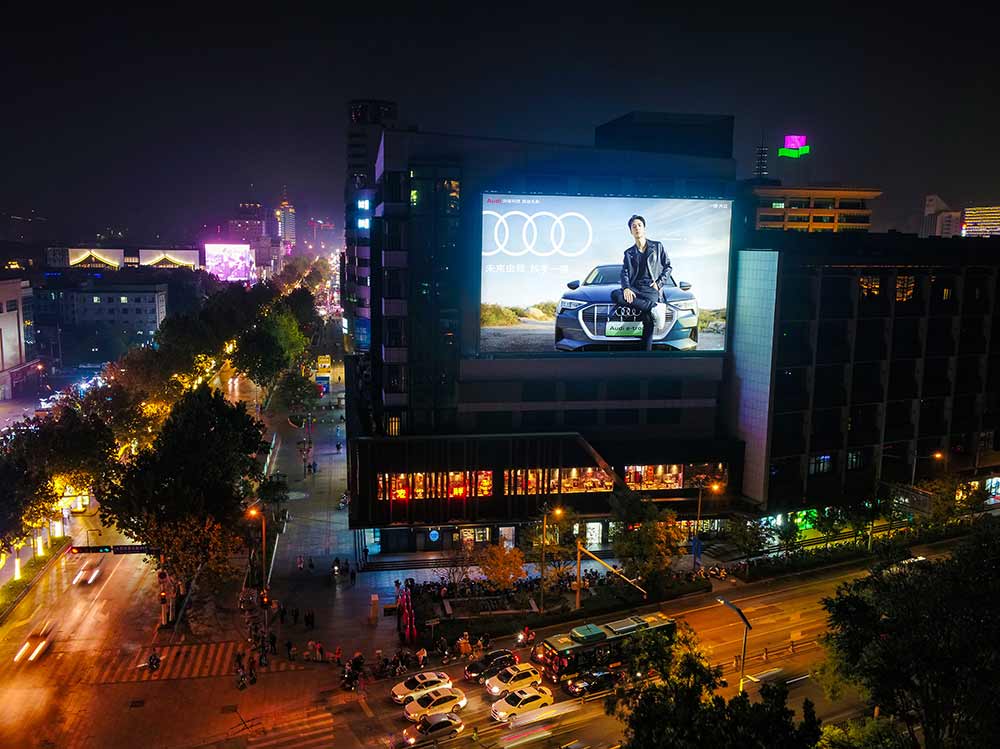 (奧迪投放濟南戶外媒體-西門電子大廈戶外墻體燈箱)