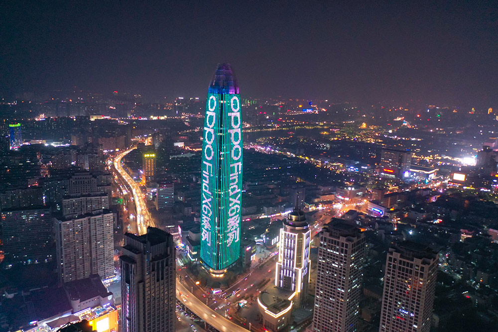 (OPPO投放濟南地標媒體--濟南綠地中心廣告)