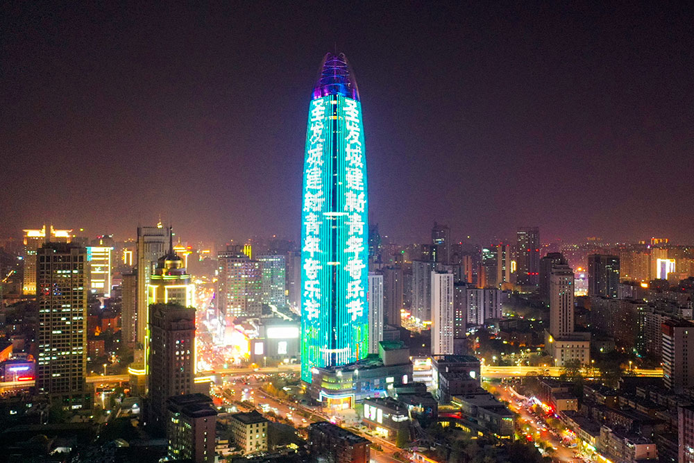 (新青年投放濟南地標媒體--濟南綠地中心廣告)