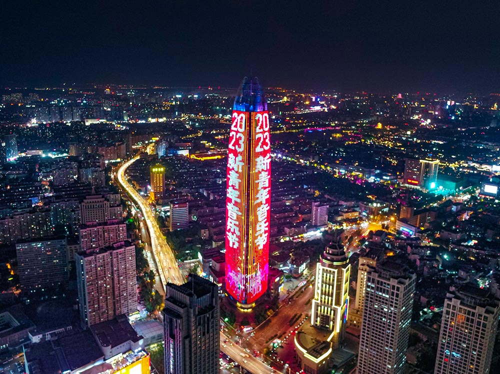 (新青年投放濟南地標媒體--濟南綠地中心廣告)
