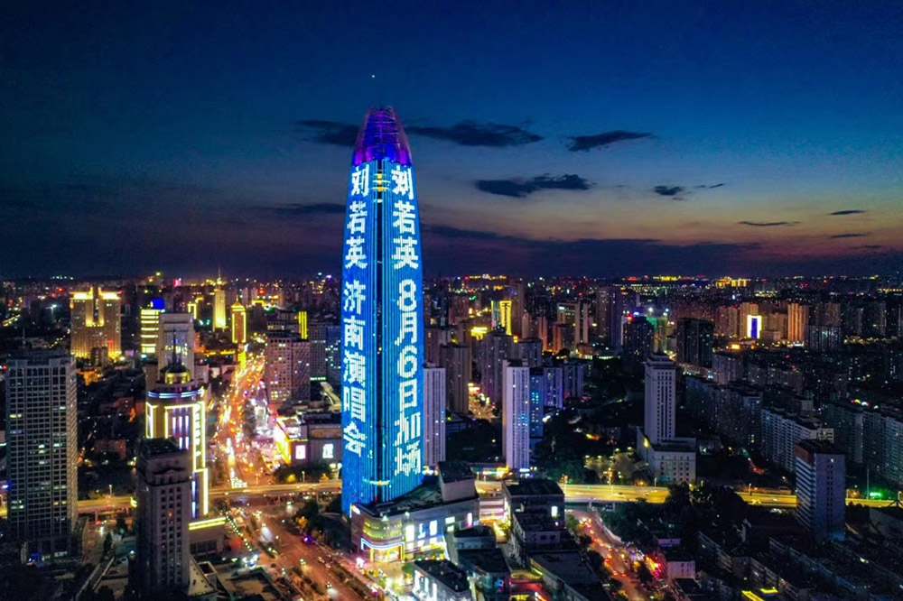濟南地標媒體燈光秀(即,簡稱綠地高媒),是山東華途文化傳媒有限公司獨家運營的濟南地標媒體,濟南綠地中心素有“泉城之根”、“濟南之根”之稱,面積63000平方米、呈三面環繞360度展示,具有超大面積、超強視覺沖擊、變幻豐富多樣及受關注高、視覺渲染力極大等優勢。