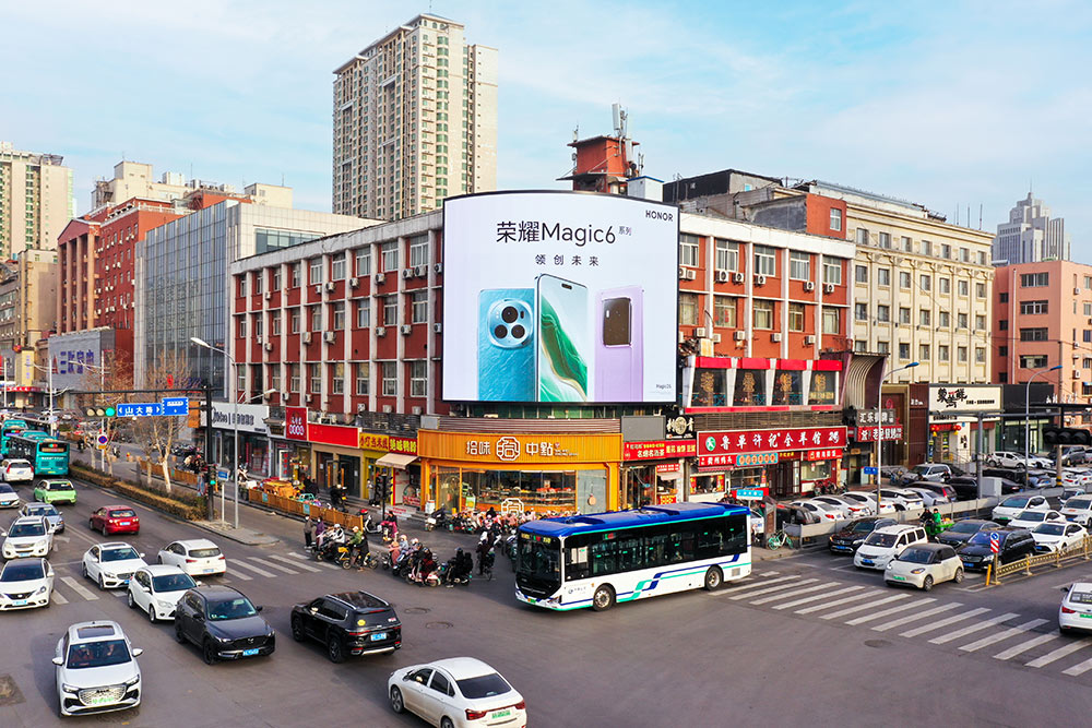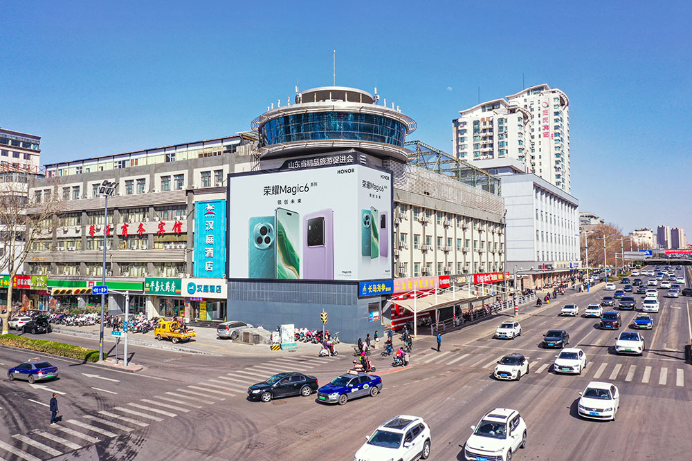 地標的戶外媒介,不僅為城市提供了全新的標記和注解,其在廣告傳播方面的價值也是顯而易見。本案由華途傳媒設計發布執行。不僅有恢宏大氣的品牌露出,而且傳播效應堪稱轟動全國!獨特或者高聳的建筑成為地標戶外勿庸贅述,進入信息時代,濟南城市地標媒體燈光秀廣告助力品牌新高度。
