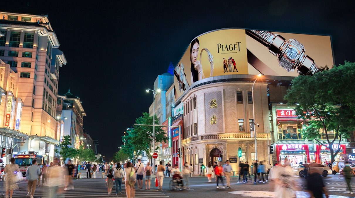 北京市王府井步行街與東安門大街交匯處(懋隆珠寶城樓頂)