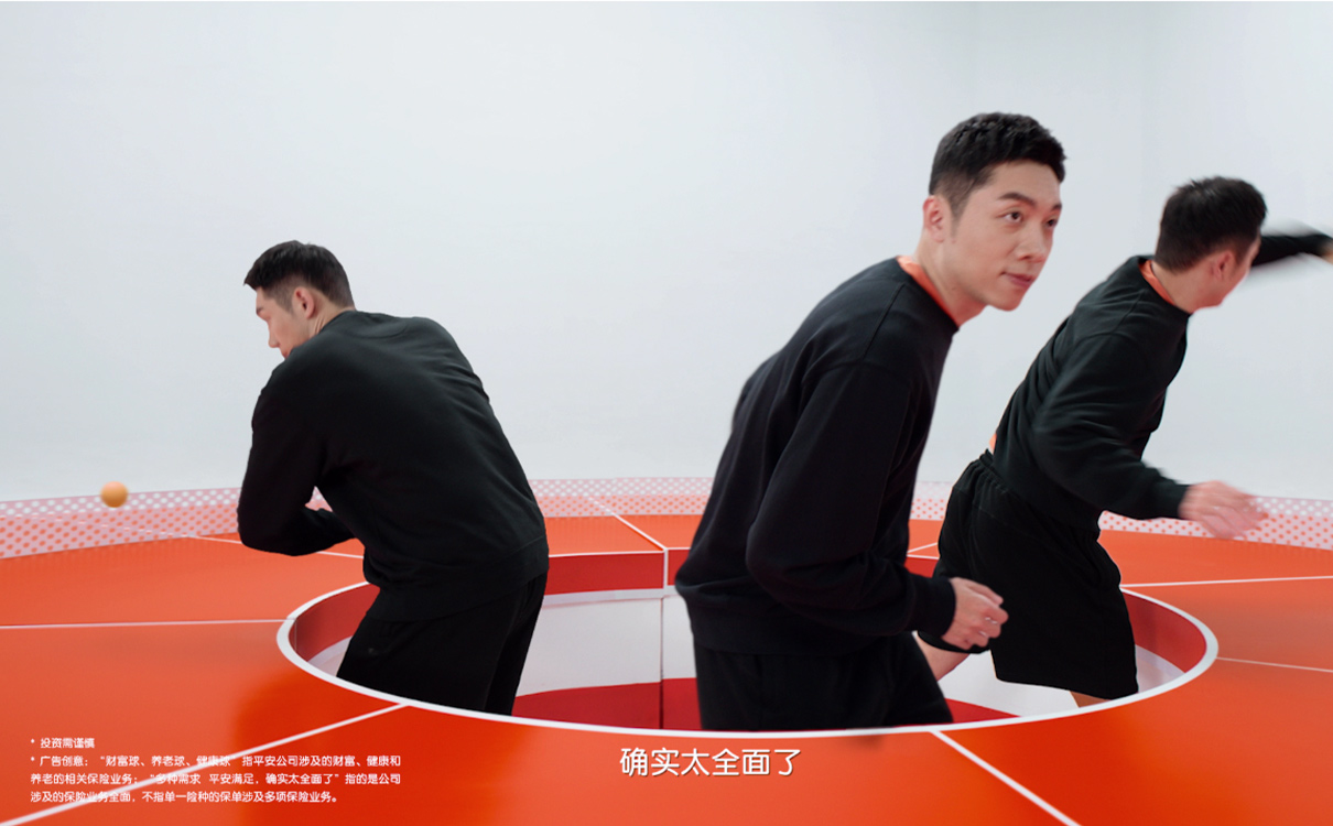 15秒廣告以許昕在乒乓球領(lǐng)域的多樣化能力,借乒乓球這一最直觀的視覺(jué)載體,比擬中國(guó)平安為廣大消費(fèi)者所能提供在不同生活情況下的潛在抵御能力。以“財(cái)富球,健康球,養(yǎng)老球”來(lái)比擬在人生不同階段所需處理和應(yīng)對(duì)的關(guān)于財(cái)富、健康、養(yǎng)老等問(wèn)題。許昕通過(guò)視覺(jué)畫(huà)面表現(xiàn)出從容回?fù)暨@顆創(chuàng)意概念表達(dá)的球,寓意在生活中中國(guó)平安可以為廣大消費(fèi)者在財(cái)富、健康、養(yǎng)老等方面提供服務(wù)。