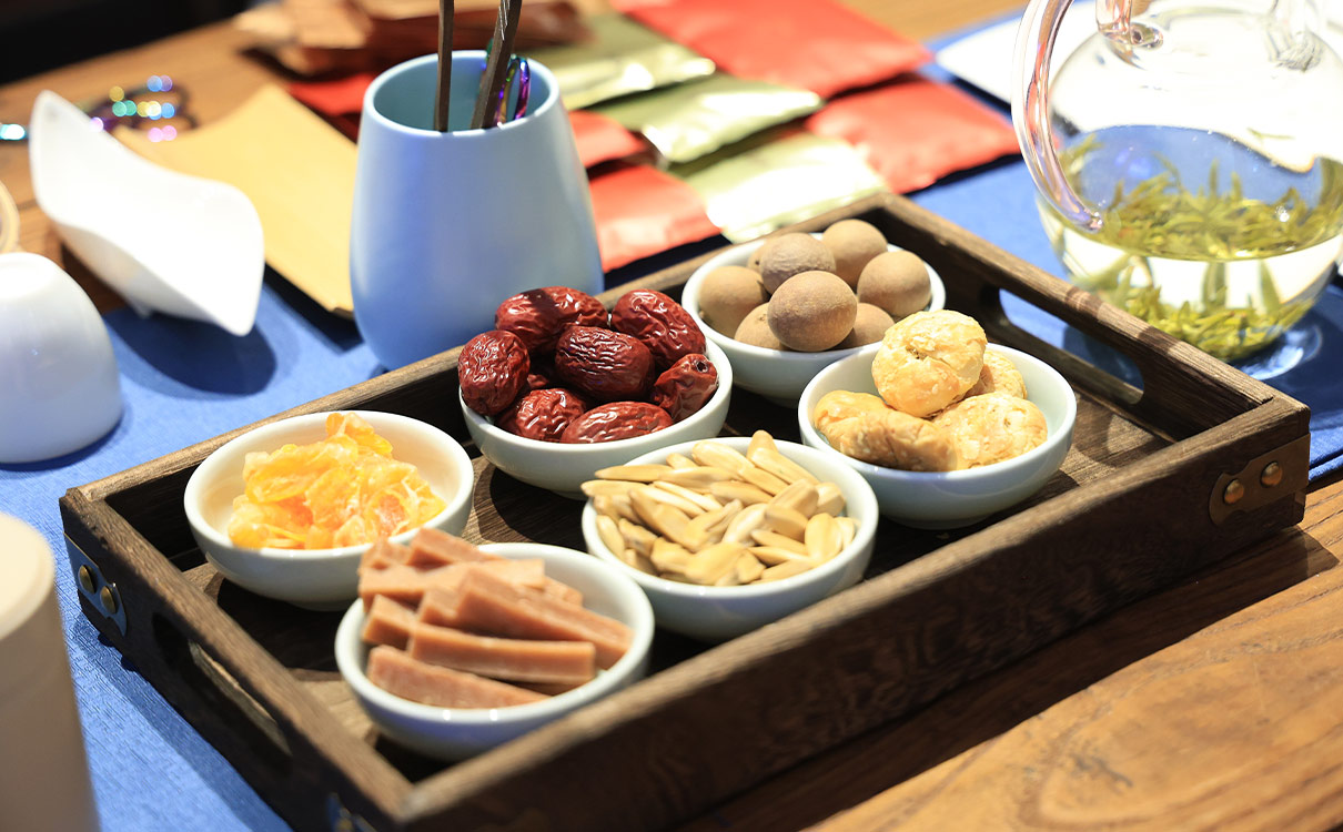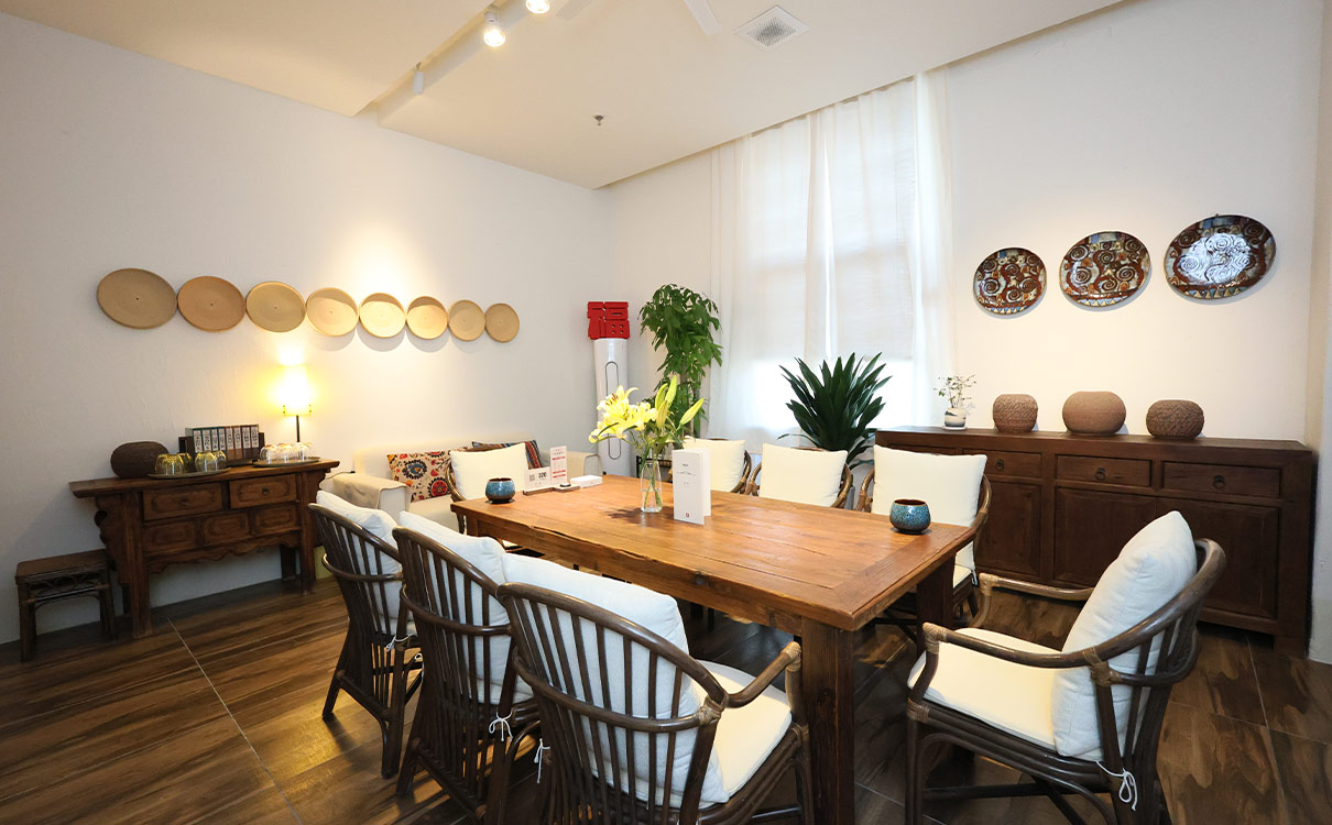 茶館整體呈現文化之地,私密度高、環境自然舒適。青瓦木窗、古韻悠悠、琴聲繞樑,在這里,一壺香茗,幾縷茶香,讓時光慢下來,沉浸在古色古香的東方雅韻里。茶館空間多樣化的定位,不僅為茶餐場所提供社交空間,還可滿足朋友小聚喝茶/用餐/摜蛋、商務洽談/接待、各類型小型會議接待、寶寶宴、生日宴、團建團餐等多種茶餐需求。其中,會議室場地空間靈活、功能齊全、舒適安靜,可根據不同的會議需求,提供適合的會議場景、調整布局;團建、寶寶宴、生日宴等不同的茶餐需求。
