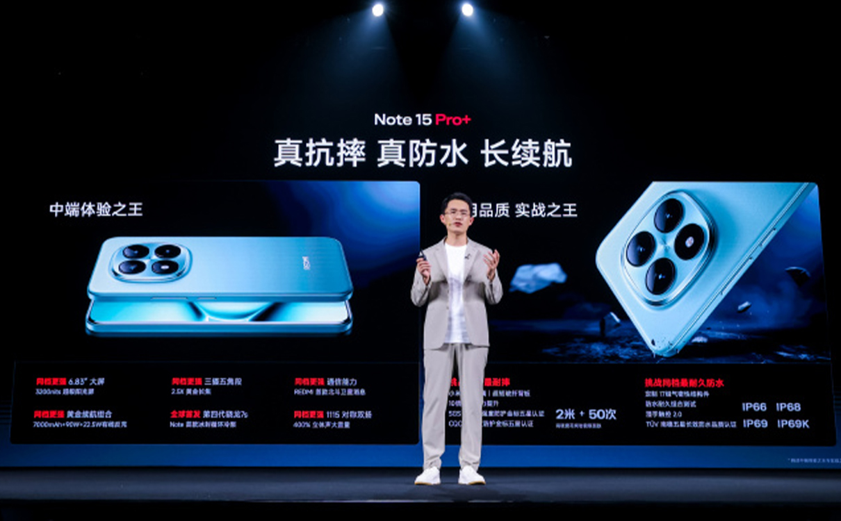 同時屏幕參數延續旗艦標準,1.5K分辨率、高刷新率、護眼顯示技術一個不少,防護性能則達到“金剛”級別。繼承前代金剛架構的Note15系列,抗彎折性能高達70公斤,更震撼的是通過IP66防噴水、IP68防泡水、IP69防高溫高壓噴水三重認證。
