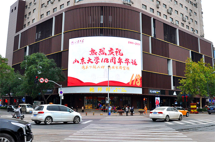 (山東大學投放“省俯”濟南泉城路彩云大廈戶外LED屏廣告)