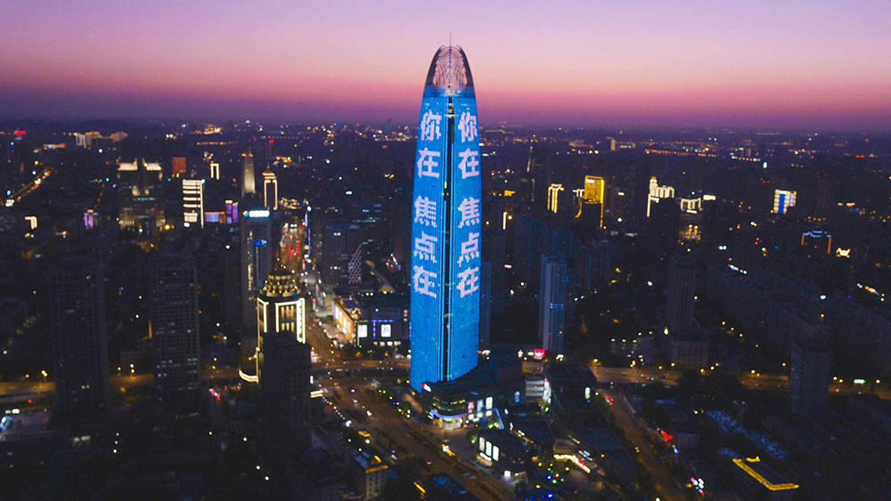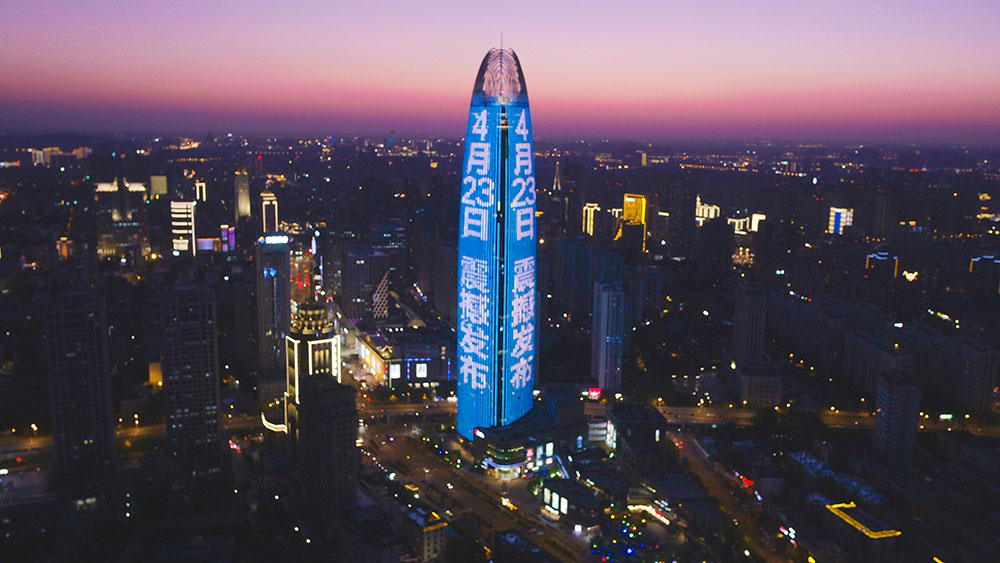 (華為投放濟南地標媒體-濟南綠地中心第一高媒廣告)