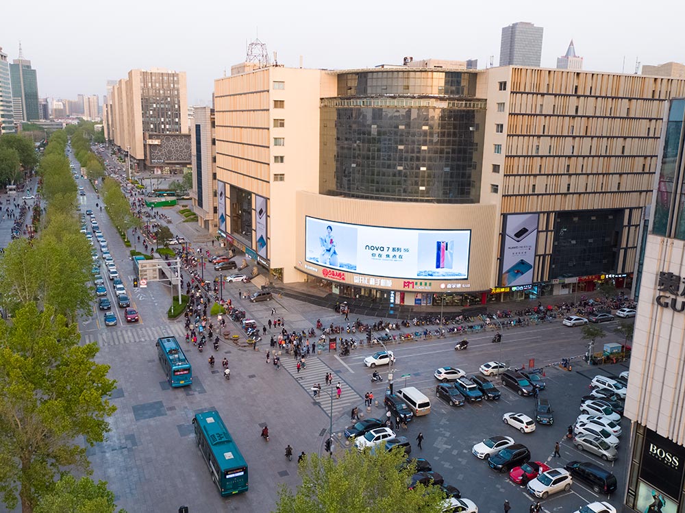 (華為投放“經十屏”銀座和諧廣場戶外LED屏廣告)