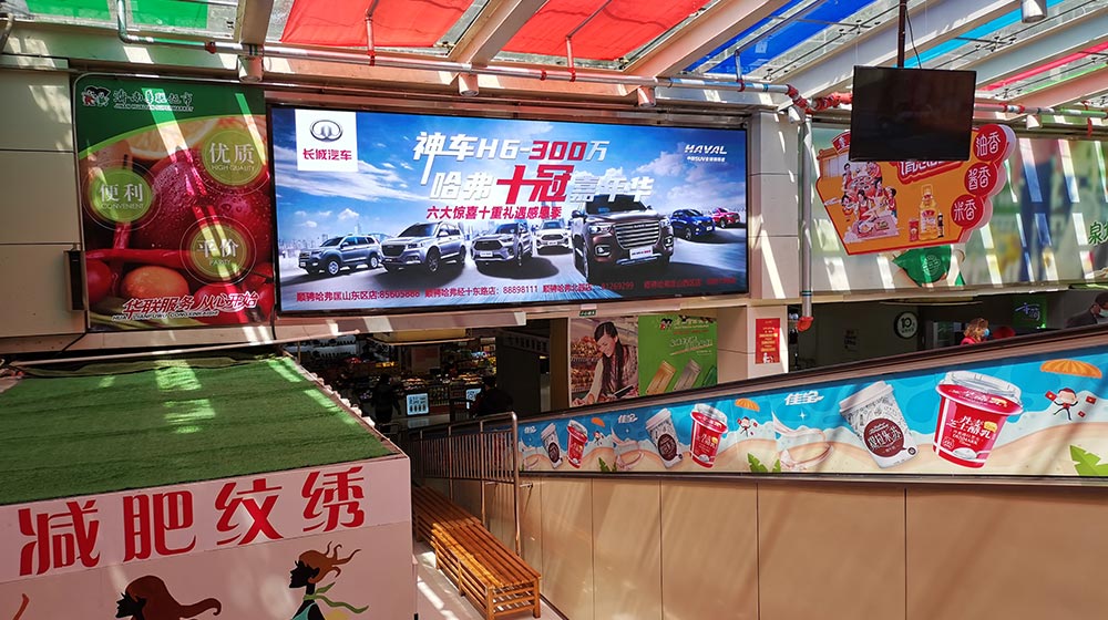 (長城汽車投放濟南商超百貨聯播屏廣告華聯館驛街店)