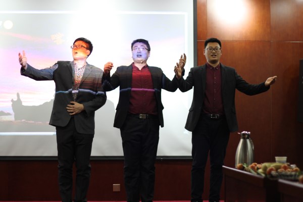 華途傳媒臥虎藏龍,姚磊、王紀(jì)偉、周林表演的風(fēng)趣幽默的《喀秋莎》博得場(chǎng)下陣陣掌聲;動(dòng)畫(huà)設(shè)計(jì)師田偉慶的歌曲清唱《相信我們會(huì)創(chuàng)造奇跡》激情澎湃;笑星鄭吉春、鄒聰、徐文升聯(lián)袂表演的相聲《華途一哥》;銷(xiāo)售部趙國(guó)輝的獨(dú)唱《今天》,更是下臺(tái)與大家互動(dòng),充分調(diào)動(dòng)了現(xiàn)場(chǎng)氣氛;華途女將們集體舞《淋雨一直走》體現(xiàn)了姑娘們美麗健康、青春靚麗的一面,之后穿插了媒介何帥的獨(dú)唱《太傻》和運(yùn)維馬媛媛的獨(dú)唱《黑色幽默》,節(jié)目精彩紛呈,掌聲不斷。