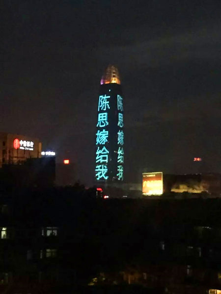 2016年5月20日晚20左右,位于濟南金街“第一高樓”LED大屏上一條“陳思嫁給我”的真情表白火爆濟南泉城之夜。