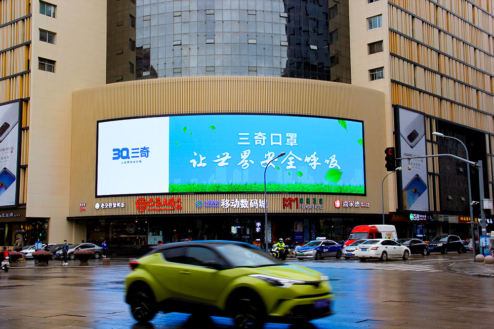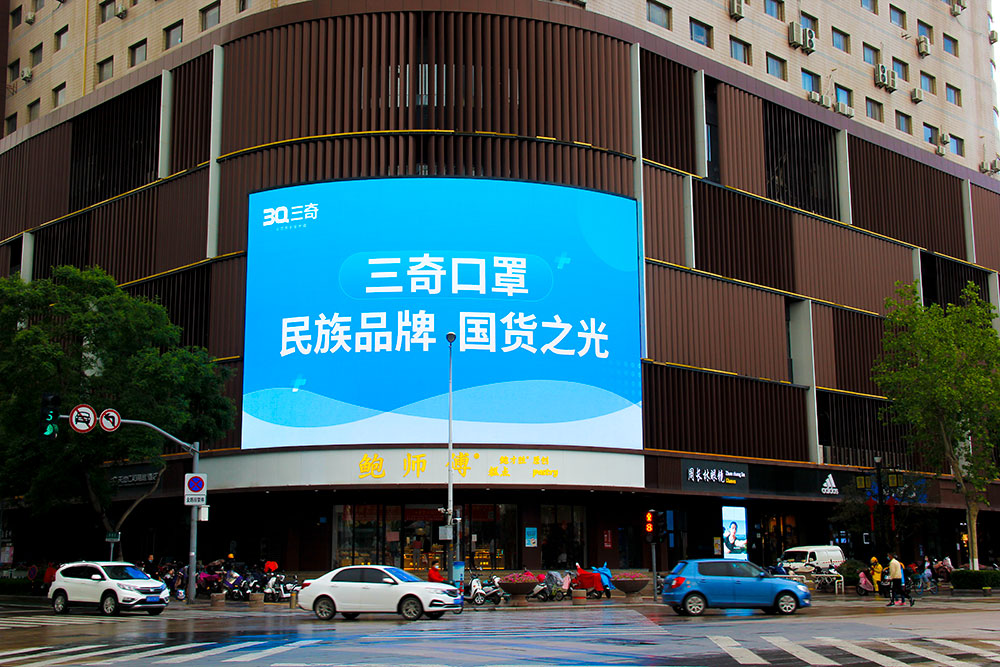 (三奇口罩投放“省俯”濟(jì)南泉城路彩云大廈戶外LED屏廣告)