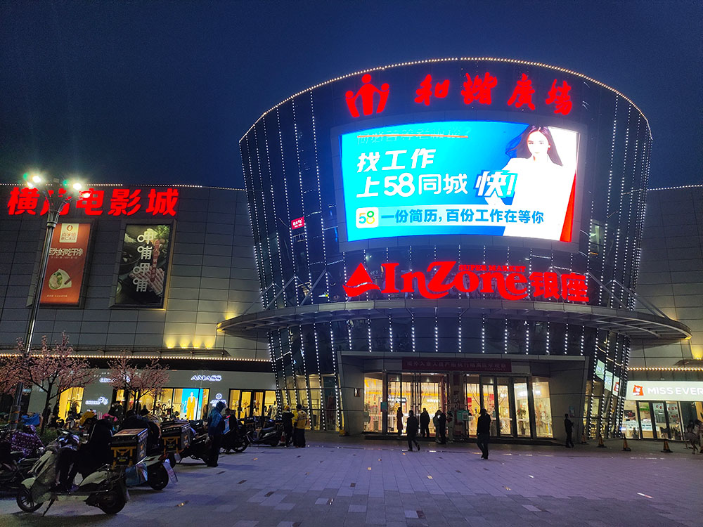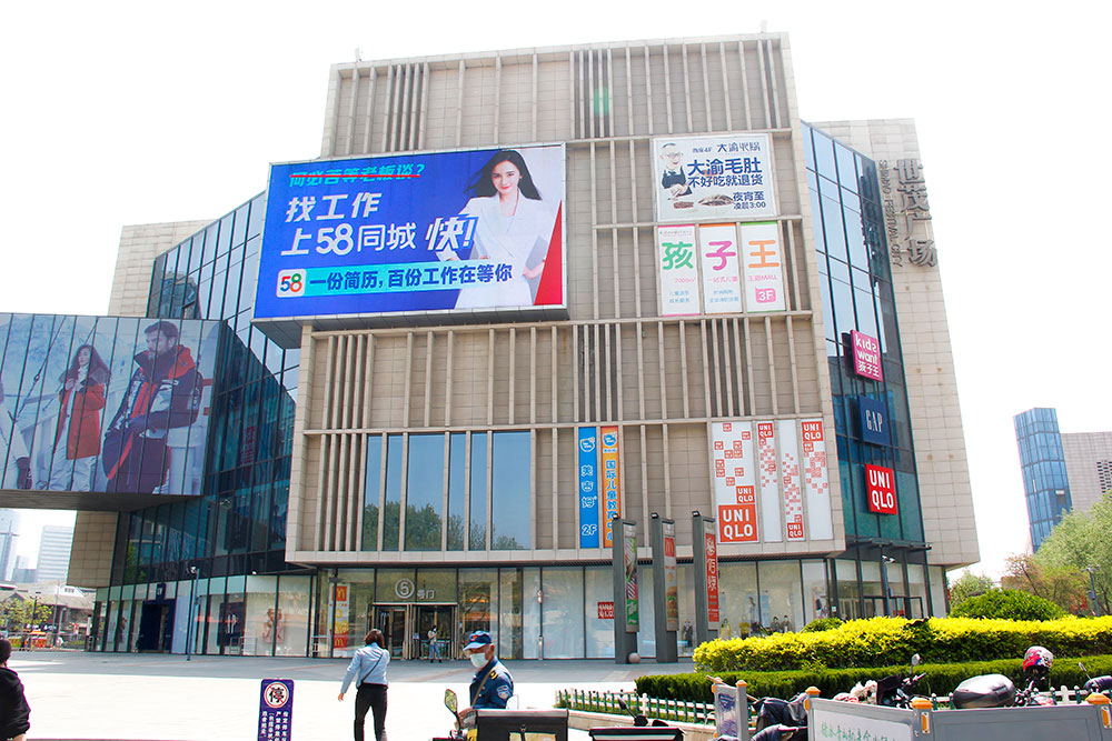 (58同城投放“軍區(qū)商圈屏”銀座八一購(gòu)物廣場(chǎng)戶(hù)外LED屏廣告)