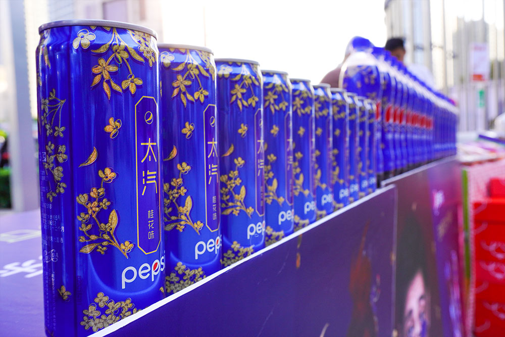 蘊藏東方雅韻的桂花味,始終是國人對傳統風味的情懷所在。「太汽」系列將這份獨特的國風印記,注入勁爽十足的百事可樂中,實力演繹“中國風是一種味道”。在包裝設計上,百事打破傳統元素與色彩的界限桎梏,以金桂花紋飾點綴經典藍色罐身,巧妙地對比構筑質感的新生國風。