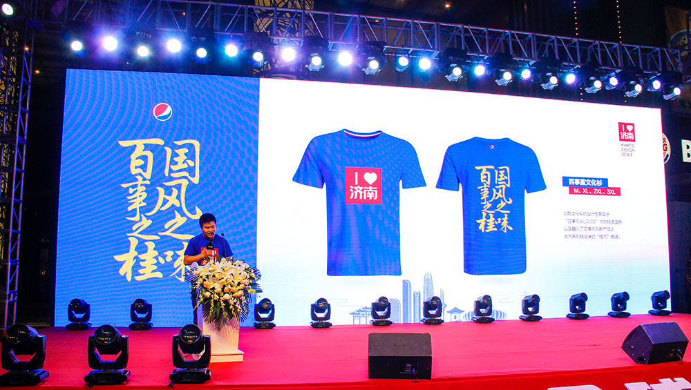 2020年5月31日晚19:30分,百事可樂在由齊魯周刊社、山東發展網和山東華途文化傳媒有限公司聯袂主辦的“首屆濟南節啟動及標識發布暨愛濟南城市文化衫發行節”活動中,展示桂花味可樂并推出百事可樂濟南城市文化衫。