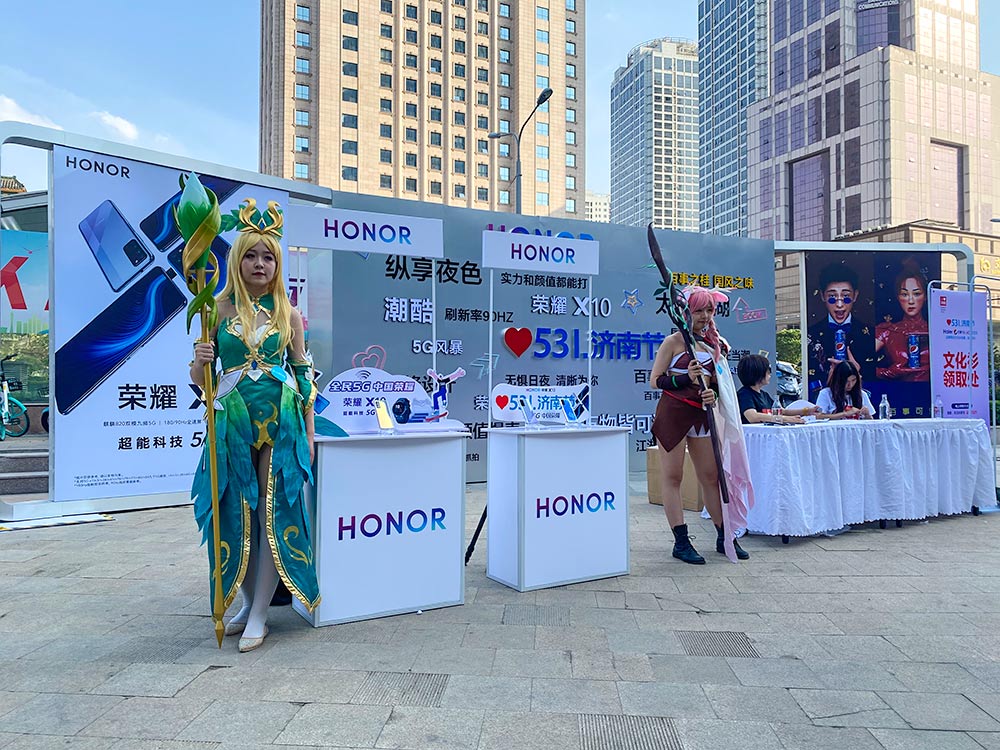 2020年5月31日晚19:30分,榮耀手機(jī)在由齊魯周刊社、山東發(fā)展網(wǎng)和山東華途文化傳媒有限公司聯(lián)袂主辦的“首屆濟(jì)南節(jié)啟動(dòng)及標(biāo)識(shí)發(fā)布暨愛濟(jì)南城市文化衫發(fā)行節(jié)”活動(dòng)中,展示榮耀X10 5G手機(jī)并推出榮耀炫白金濟(jì)南城市文化衫。
