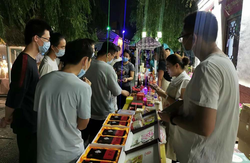 在政府指定的地點、時間,宏濟堂制藥部分管理人員、家屬利用業余時間,展示健康香囊、酸棗仁茯苓百合茶等保健茶和文旅產品,以及蜂蜜、阿膠系列產品、棗蓉花生、黑芝麻丸、紅豆薏米丸等,這些產品凝聚了傳統手工技藝,彰顯了養生內涵,傳遞了健康理念,滿足了市民夜間消費的需求,促進了經濟消費。