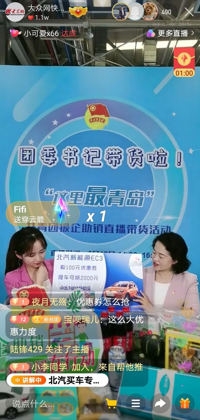 6月13日下午2點,一場特別的直播活動在青島進行,團青島市委副書記韓昌麗帶領青島出版集團團委和團萊西市委相關負責同志變身“直播達人”,亮出“十八般才藝”,通過快手等平臺向廣大網友和觀眾推薦青島制造品牌產品,集中青年力量為青島打call,直播間推薦產品紛紛變“爆款”,上線的20臺北汽新能源汽車直播還未結束就被一搶而空。
