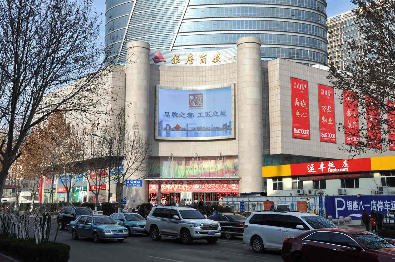 (青島制造投放“軍區商圈屏”銀座八一購物廣場戶外LED屏廣告