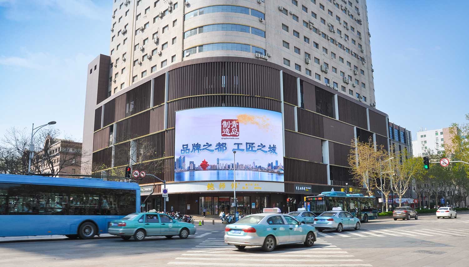 (青島制造投放“泉眼”齊魯國際大廈戶外LED屏廣告)