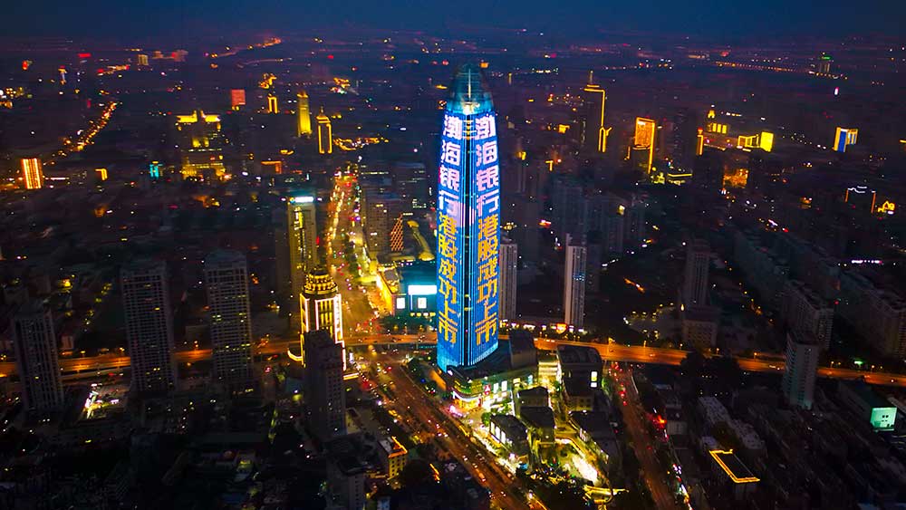 (渤海銀行投放濟南地標媒體-濟南綠地中心第一高媒廣告)