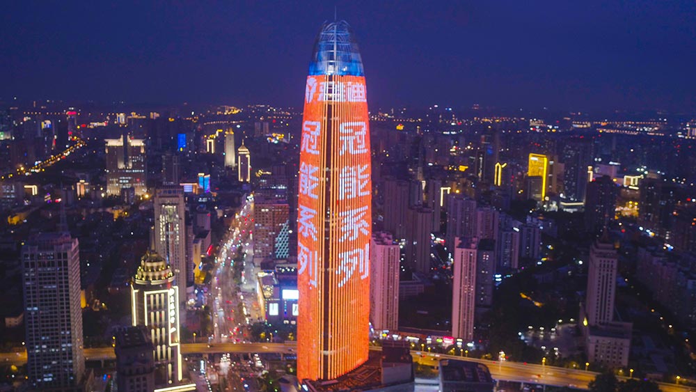 (雅迪電動車投放濟南地標媒體-濟南綠地中心第一高媒廣告)