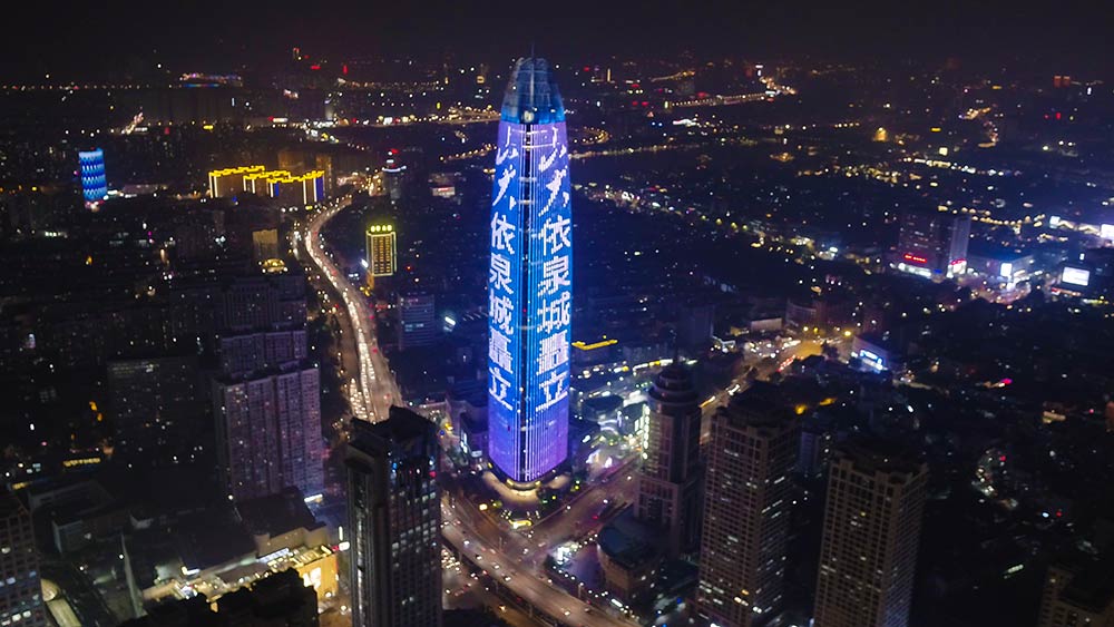 一座城市,塑造一所大學(xué);一所大學(xué),繁榮一座城市。濟(jì)南深邃的夜空下,紛紛點(diǎn)亮中國(guó)紅、夢(mèng)幻藍(lán)、琉璃金的祝福語(yǔ):“我愛(ài)山大”“山大依泉城矗立”“泉城因山大靚麗” “芳華山大 家國(guó)天下”“山東大學(xué)生日快樂(lè)”。 從經(jīng)十路中國(guó)人壽大樓,東至經(jīng)十東路浙商銀行大樓、浪潮集團(tuán)大廈到漢峪金谷高樓建筑群,一座座標(biāo)志性建筑為山大閃耀;從市中區(qū)綠地中心,東至世茂廣場(chǎng)、彩云廣場(chǎng)、山東國(guó)際創(chuàng)意中心到高新區(qū)濟(jì)南國(guó)際會(huì)展中心,一面面大屏為山大明亮。