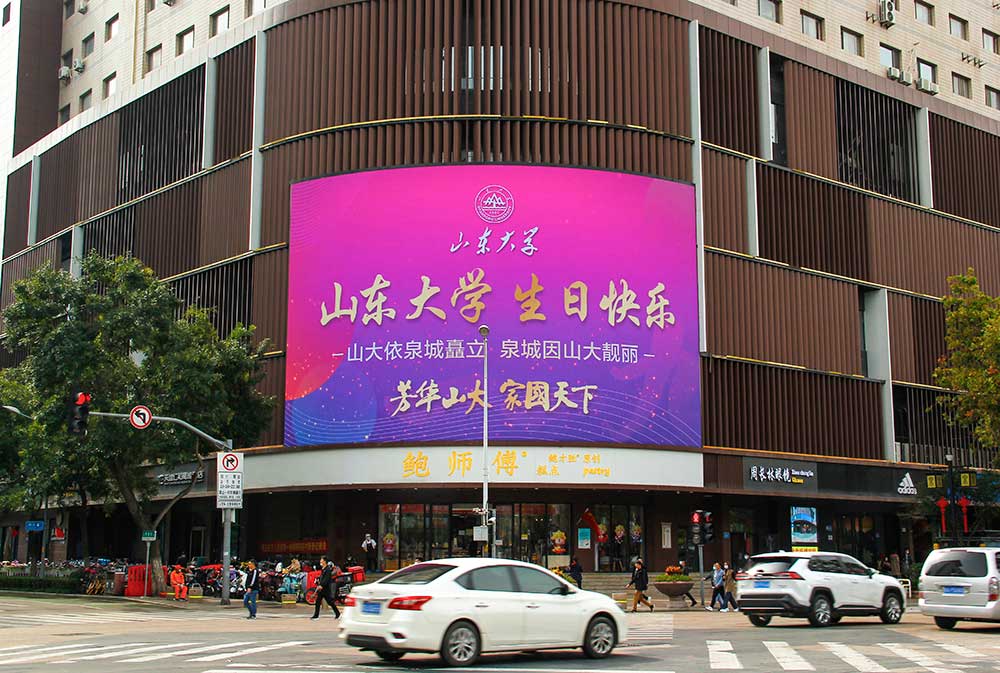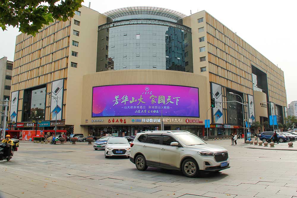 (山東大學(xué)投放“旗艦商屏”銀座商城旗艦店戶外LED屏廣告)