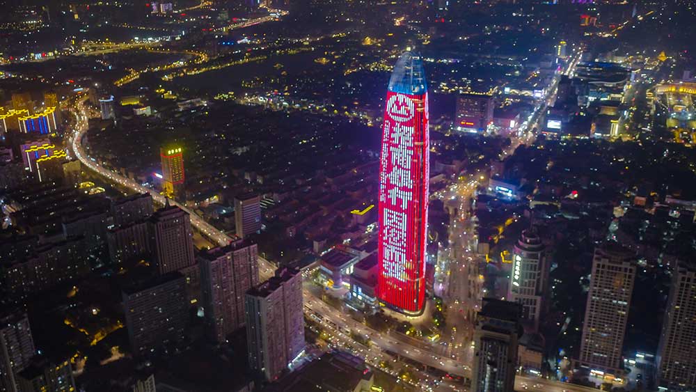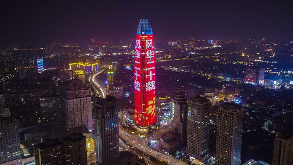 (招商銀行投放濟南地標媒體-濟南綠地中心廣告)