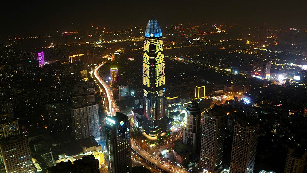 (黃金醬酒投放濟南地標媒體-濟南綠地中心第一高媒廣告)