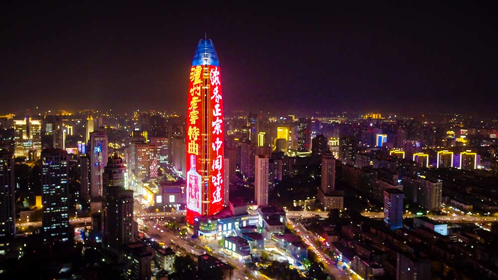 (瀘州老窖投放濟南地標媒體-濟南綠地中心廣告)