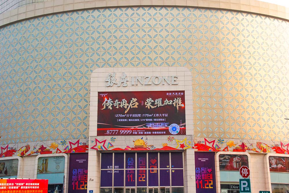 (龍湖·天宸原著投放“旗艦商屏”山東銀座商城旗艦店戶外LED屏廣告)