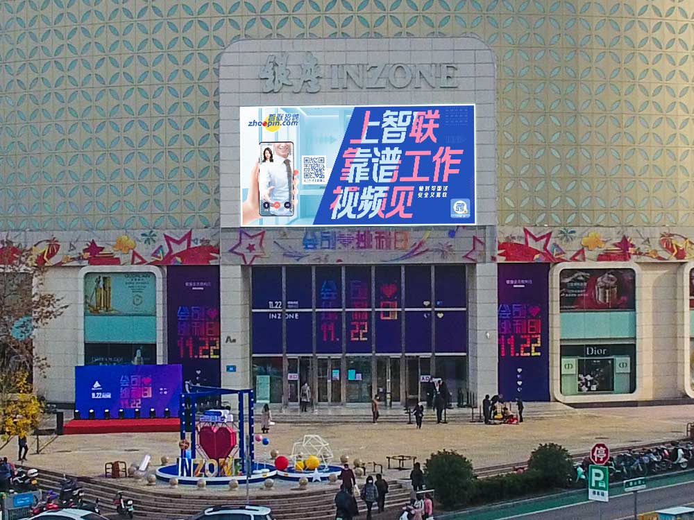 (智聯招聘投放“旗艦商屏”山東銀座商城旗艦店戶外LED屏廣告)