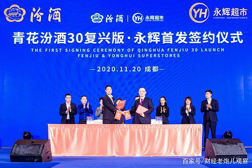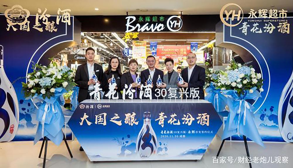 2020年11 月 20 日,以“大國之釀 青花汾酒”為主題的青花汾酒 30·復興版永輝超市首發儀式在成都舉行。