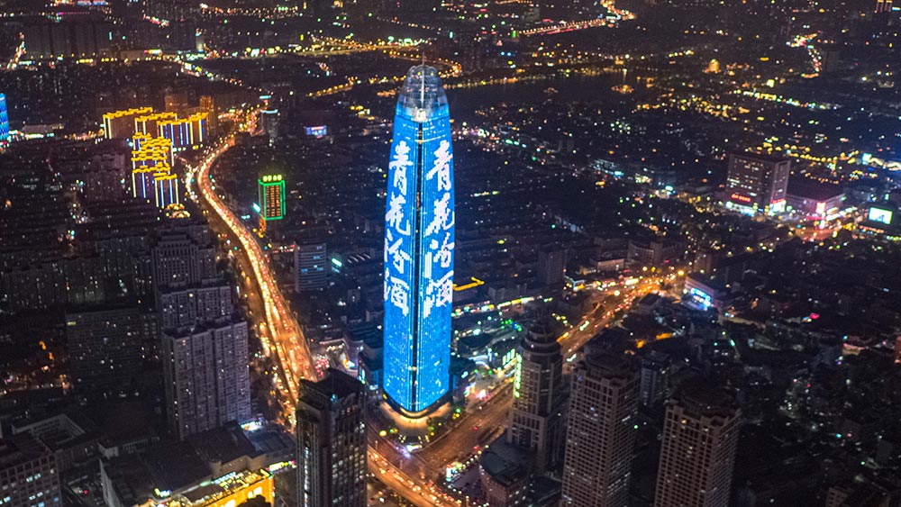 (青花汾酒投放濟南地標媒體-濟南綠地中心廣告)