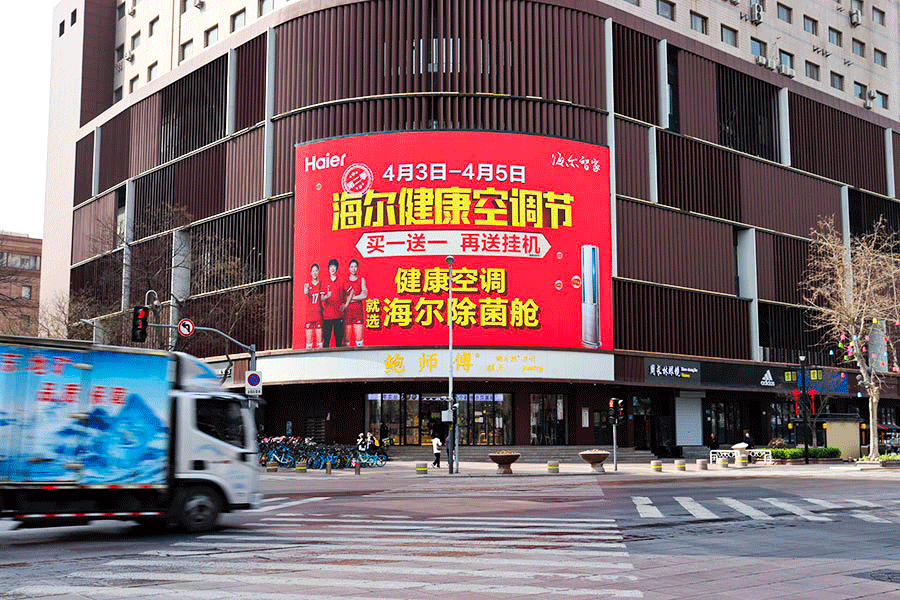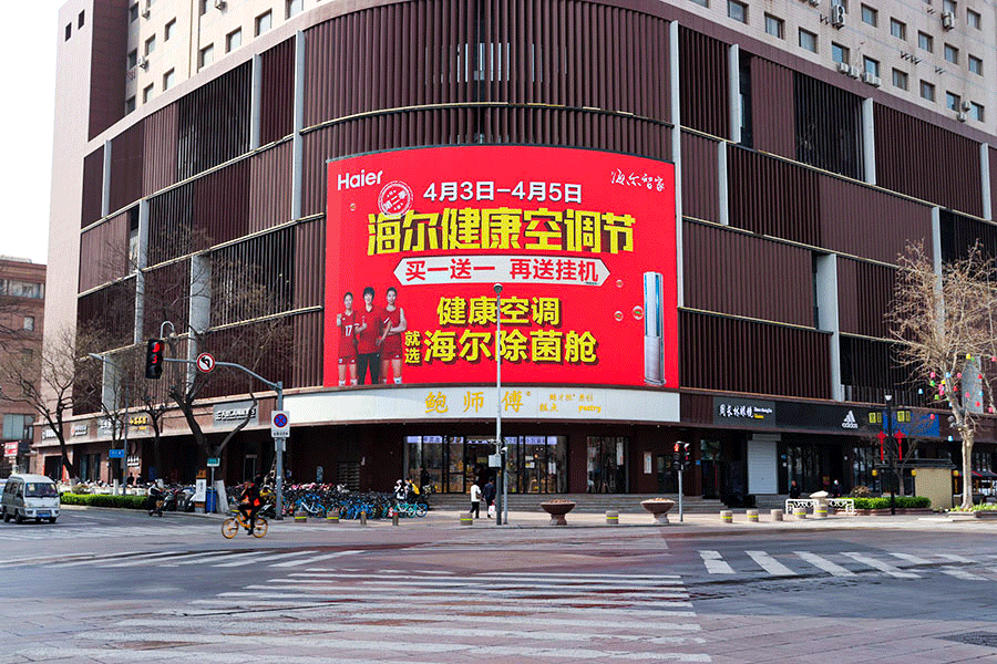 2021年,海爾空調會把握全新的數字化趨勢,推進零售轉型,在山東戰役中與各區域VIP客戶肩并肩、手挽手堅持創新轉型,高端引領,場景引爆,共同開啟海爾空調的新篇章。同時,為了更好地推廣海爾健康空調節活動海爾聯合山東華途傳媒在濟南泉城路彩云大廈戶外LED屏廣告進行投放,更便捷的向大眾宣傳海爾健康空調節動,吸引更多客戶前來參與。