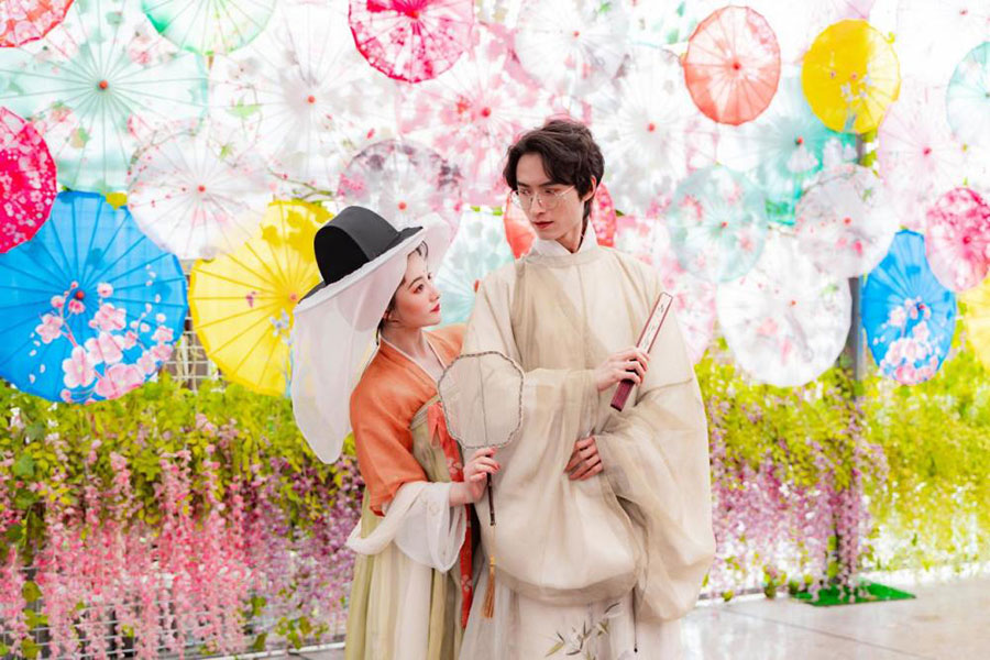 時節氤氳,在主題樂園方特東方神畫里,古風建筑群和現代科技十足的游樂項目深度融合,也吸引眾多漢服愛好者前往打卡。漢服網紅宮寒、芝月也來到濟南方特,帶領十二花神巡園,助力方特花朝節。眾多穿著漢服的游客行走在古色古香的樂園內,也成為方特園區獨特的風景。