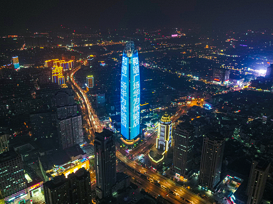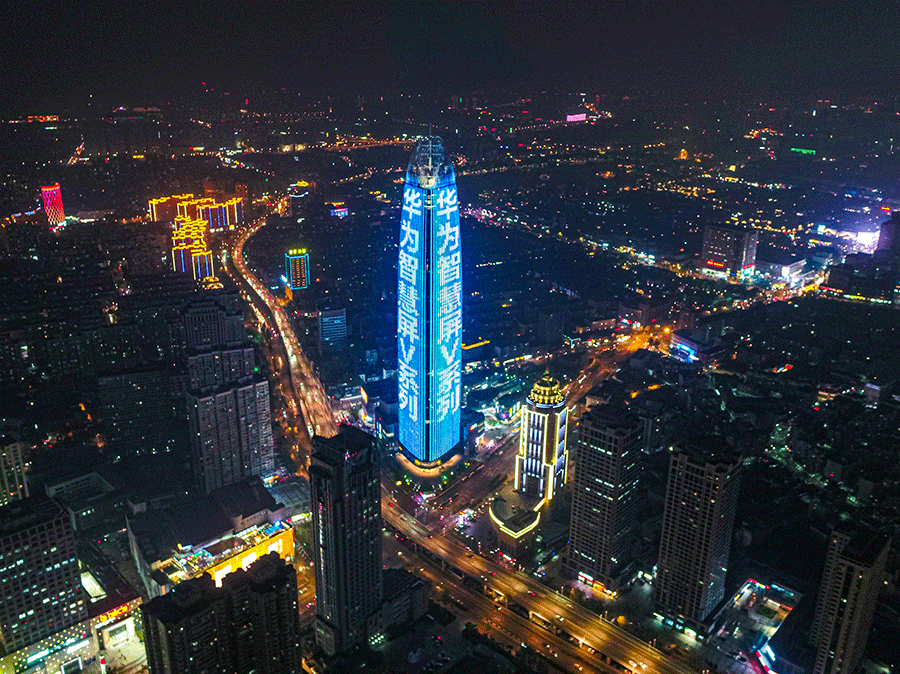 (華為投放濟南地標媒體-濟南綠地中心廣告)