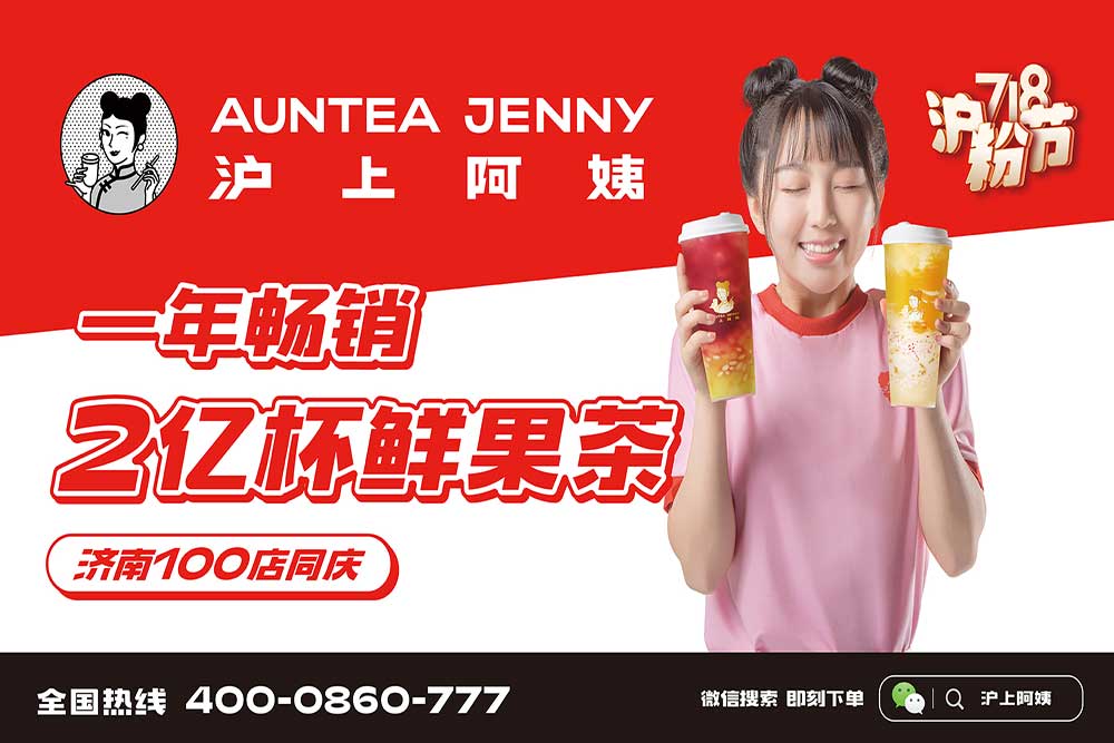 滬上阿姨2013年成立于上海,主打現煮五谷茶,在產品中添加血糯米、紅豆、青稞、燕麥等生活中常見的糧食,為消費者提供健康飲品。目前,滬上阿姨終端授權門店超過1500家,為“千店級茶飲品牌”中的一員。2019年,滬上阿姨更新品牌、推出”現煮五谷茶,只喝滬上阿姨”的品牌slogan,攻占奶茶市場。