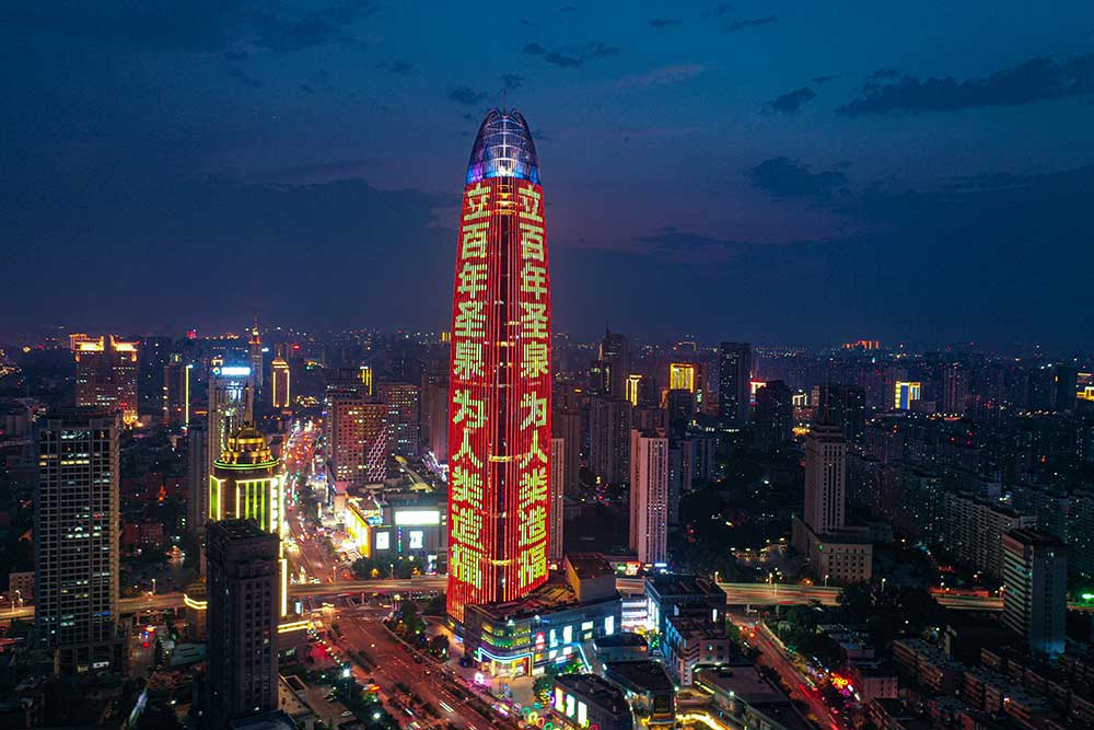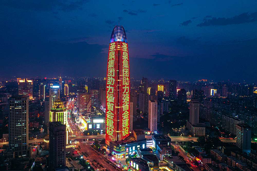(圣泉集團投放濟南地標媒體--濟南綠地中心廣告)