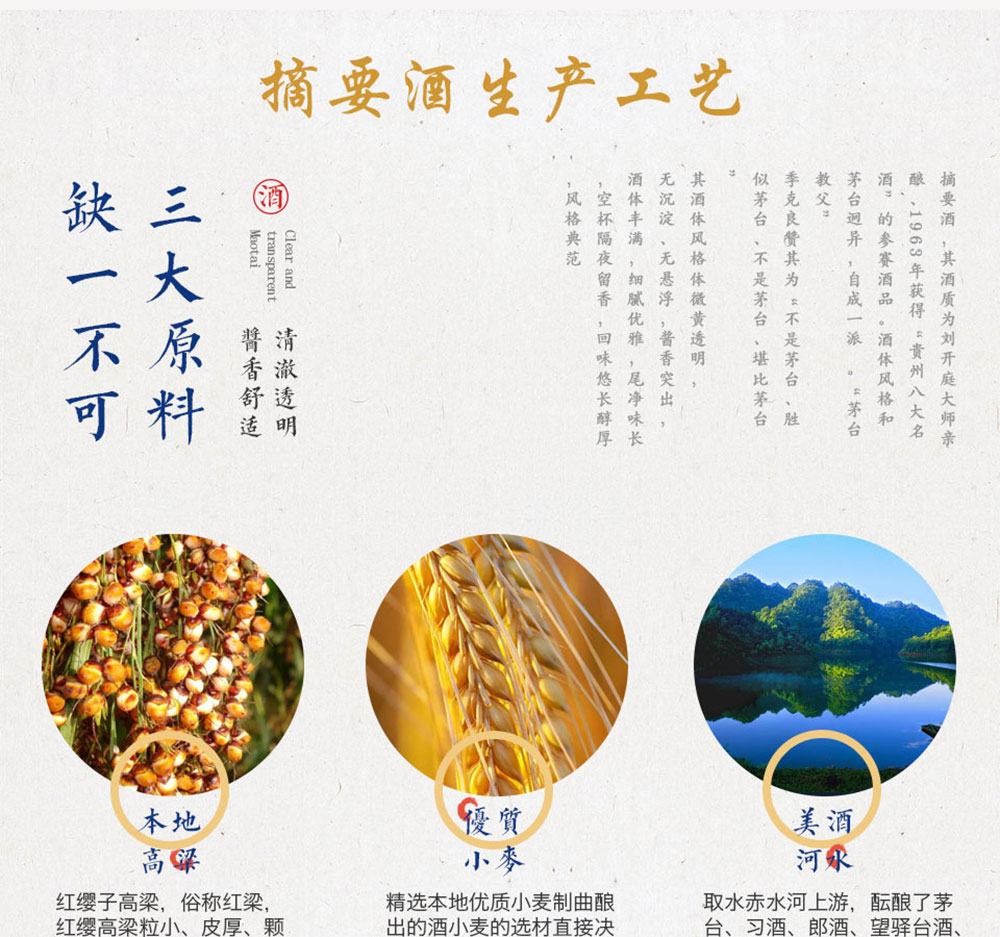 千元價位,百億價值使摘要酒在品牌價值上站穩腳跟;名家設計,賦予其獨特魅力;數十年窖藏、千年回沙工藝,成就“摘要醬香酒,高端新選擇”。