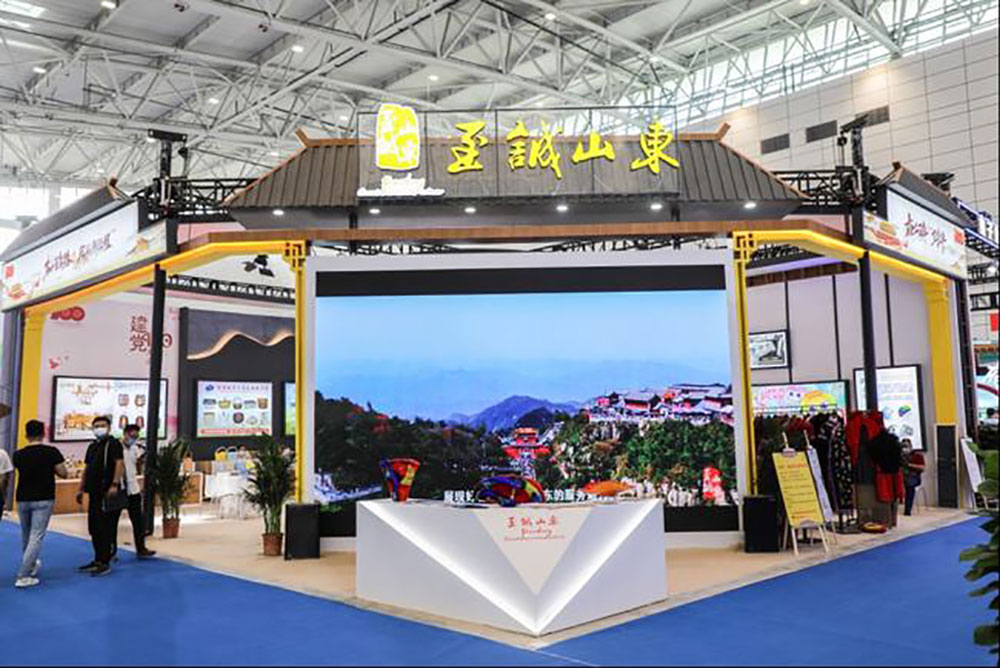 9月16日—20日,第二屆中國國際文化旅游博覽會在濟南國際會展中心開幕。以“慶祝建黨百年 共享盛世文旅”為主題,山東省16市26區縣組團參展,本屆博覽會上,“二安”郵票、趵突泉永恒筆、金絲彩貼帆布袋、風箏手機殼等山東各市國潮文創產品相繼展出。來自山東歌舞劇院、山東省雜技團、山東省京劇院、山東省呂劇院、山東省話劇院、山東柳子劇院等24家省、市級文藝院團和演藝機構選送的民樂演奏《再唱山歌給黨聽》、紅色話劇《微山湖》、京劇《八大錘》等30部精彩劇目將在山東國際會展中心展會現場輪番上演。