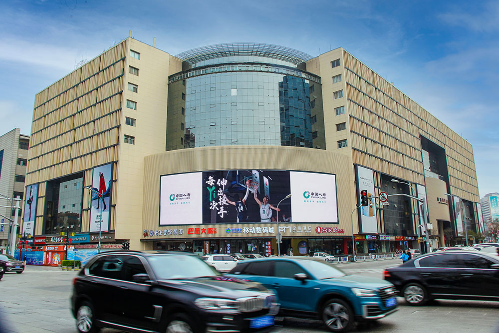 (中國(guó)人壽投放“泉眼”泉城路齊魯國(guó)際大廈戶外LED屏廣告)