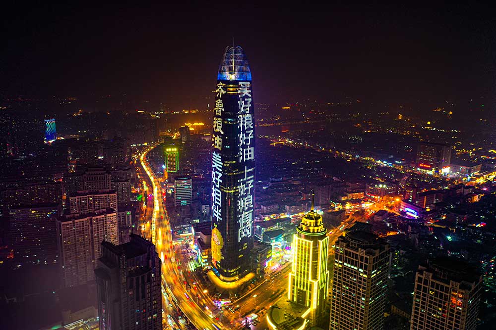 (齊魯糧油投放濟南地標媒體--濟南綠地中心廣告)