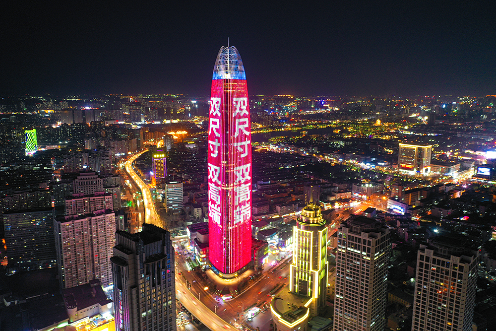 (小米手機投放濟南地標(biāo)媒體--濟南綠地中心廣告)